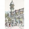 Kapitan Keling Mosque is one of Tan Choon Ghee’s favourite subjects rendered in watercolour and Chinese ink, both media of which he is adept at. In most of these works, his accent is often the minaret, which was added during the 1930 renovations, and shown here with the adjacent buildings. The last renovation was done in 2003, mainly to circumvent drainage problems. The oldest historical mosque in Penang named after the Indian Muslim leader Caudeer Mohudeen, it takes its present shape with Mughal domes and turrets after a face-lift in 1910.
