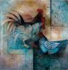 Cockerels are not staple themes in Dato’ Chuah Thean Teng’s batiks although he did a few in Chinese ink on rice-paper. The trinity of roosters heralding the morning break and thus a new dawn of endeavour, with the sunbursts on the top section and accents on the reddish coxcombs, plays loosely on the geometric and fluid overlaps. The wings take on an armour-like protection, making the crowing chanticleers symbolic gatekeepers. But the device is more to create an abstract pattern with shimmering highlights, and to show that it is achievable in a batik work with touches of acrylic.