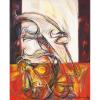 A pair to Topeng/Wayang Jugra I, this work has a similar composition with a much less intimidating reflection of the soul. Yusof Ghani’s Topeng (Mask) tends to expose the ugly soul or niat (intentions) rather than at concealing them. This work is one of the post ‘double Topeng’ solos. Topeng/Wayang Jugra II expresses the interconnectivity of men and nature. The artist turns to nature with a reverential sense of symbolism and awareness of the divine manifestation that ‘all creatures reflect some aspect of the Divine, as an image is reflected in the mirror’, and man is just a shadow wanting to play the role of the player. This causes man to sink further into his own error, altruistically forcing man to confront their intentions and manipulation of nature.