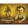 This oil painting shows a girl that appears to be caught in meditative contemplation, daydreaming while by her side a little bonsai tree is growing with a minuscule and peculiar man walking around it. Dream-like in nature, the work is consistent with Siund’s particular style which is quirky and eccentric in essence and illustrates the artist’s interest in depicting idiosyncratic scenes that show traces of his own experiences and visions.