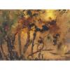 Suffused with an orange glow, this work uses the wet-on-wet technique, which is denser in the centre as shown by the blotchy tree trunks for a silhouette effect. The contrasting hues of golden yellow and brown of sky and water contrast sharply with the darker curtain of undergrowth on the left. As the title suggests, two figures are perched on the banks of the river waiting for their father to return, as boats criss-cross their view. Menanti (awaiting) is a recurrent theme in communities that are situated on the shore of the sea, because of the precarious living of the fishermen. But while the focus is on the anxious but sanguine wives or parents, like in the works by Mazli Mat Som and Chang Fee Ming, Abdullah Ariff’s goes more for ambient drama.