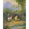 Tan Peng Hooi is perhaps one of Penang art’s best kept secrets, being versatile in painting almost any subjects – nudes, flowers (orchids and lotus), landscapes, fishing villages and harbours, animals, fowls and birds. His specialty is creating the atmospheric backdrop effect similar to that of Lee Man Fong. He is particularly noted for his paintings of feathered friends, evident in his solos in 1967, 1968 and 1970. The feathered brood is often shown as a family, with the cockerel preening himself and the little chicks sticking close to the mother hen.